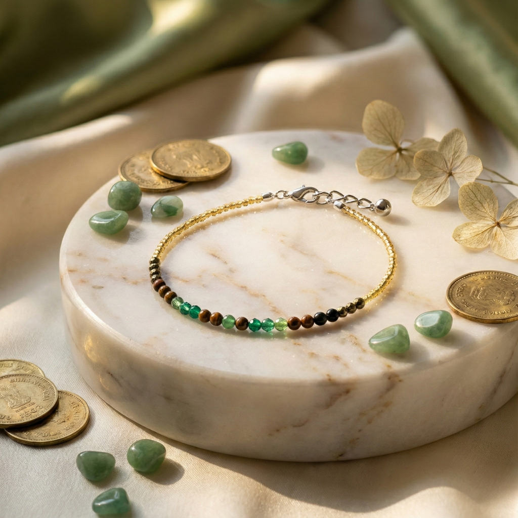 DhanYog Anklet is a sacred piece designed to invite prosperity and abundance into your life. Crafted with spiritual intention, this delicate anklet embodies the principles of DhanYog—the celestial alignment that attracts wealth and financial blessings. Wear it as a daily reminder of your connection to abundance and the universe's generosity. Perfect for those seeking to harmonize their energy with prosperity consciousness and manifest their financial aspirations with grace and spiritual awareness.